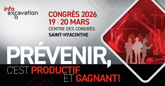 Prévenir les dommages aux infrastructures souterraines est essentielle pour la sécurité des travailleurs et des citoyens, mais c’est également un choix stratégique qui a des impacts directs sur la productivité des chantiers, les coûts, les échéanciers et le maintien des services. C’est autour de cette réalité qu’Info-Excavation tiendra son congrès annuel 2026, les 19 et 20 mars au Centre des congrès de Saint-Hyacinthe. Voilà une occasion privilégiée pour les municipalités d’échanger avec leurs pairs et les partenaires clés de l’industrie sur les bonnes pratiques ainsi que de renforcer une culture de collaboration et de prévention des dommages. Profitez du tarif préférentiel jusqu’au 5 février!