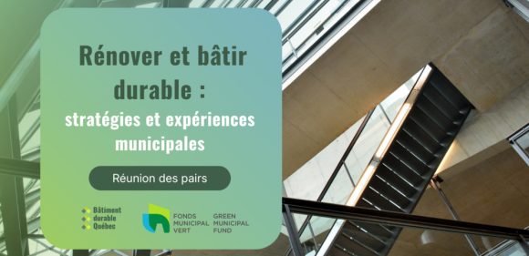 Les municipalités du Québec se mobilisent plus que jamais pour transformer leur parc immobilier et accélérer la transition écologique. Pour soutenir cet élan, Bâtiment durable Québec (BDQ) s’associe au Fonds municipal vert pour offrir une série de rencontres destinées aux employés municipaux souhaitant rendre leurs bâtiments et leurs pratiques plus durables. Cette deuxième rencontre du réseau de pairs aura lieu le jeudi 12 février, de 13 h à 14 h 30. Il s’agit d’une occasion pour les gestionnaires et les professionnels municipaux de partager leurs expériences, leurs défis et leurs solutions autour de projets concrets!